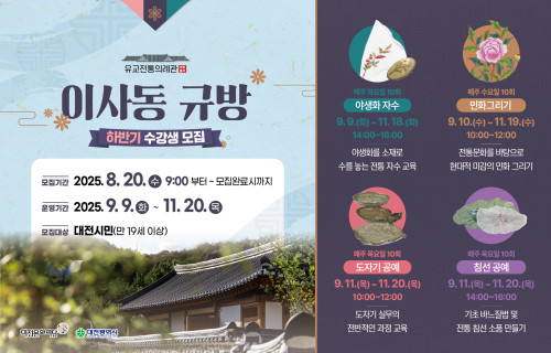 전통 야생화 자수, 민화 그리기, 누비 및 침선 공예, 도자기 공예 교육 프로그램
